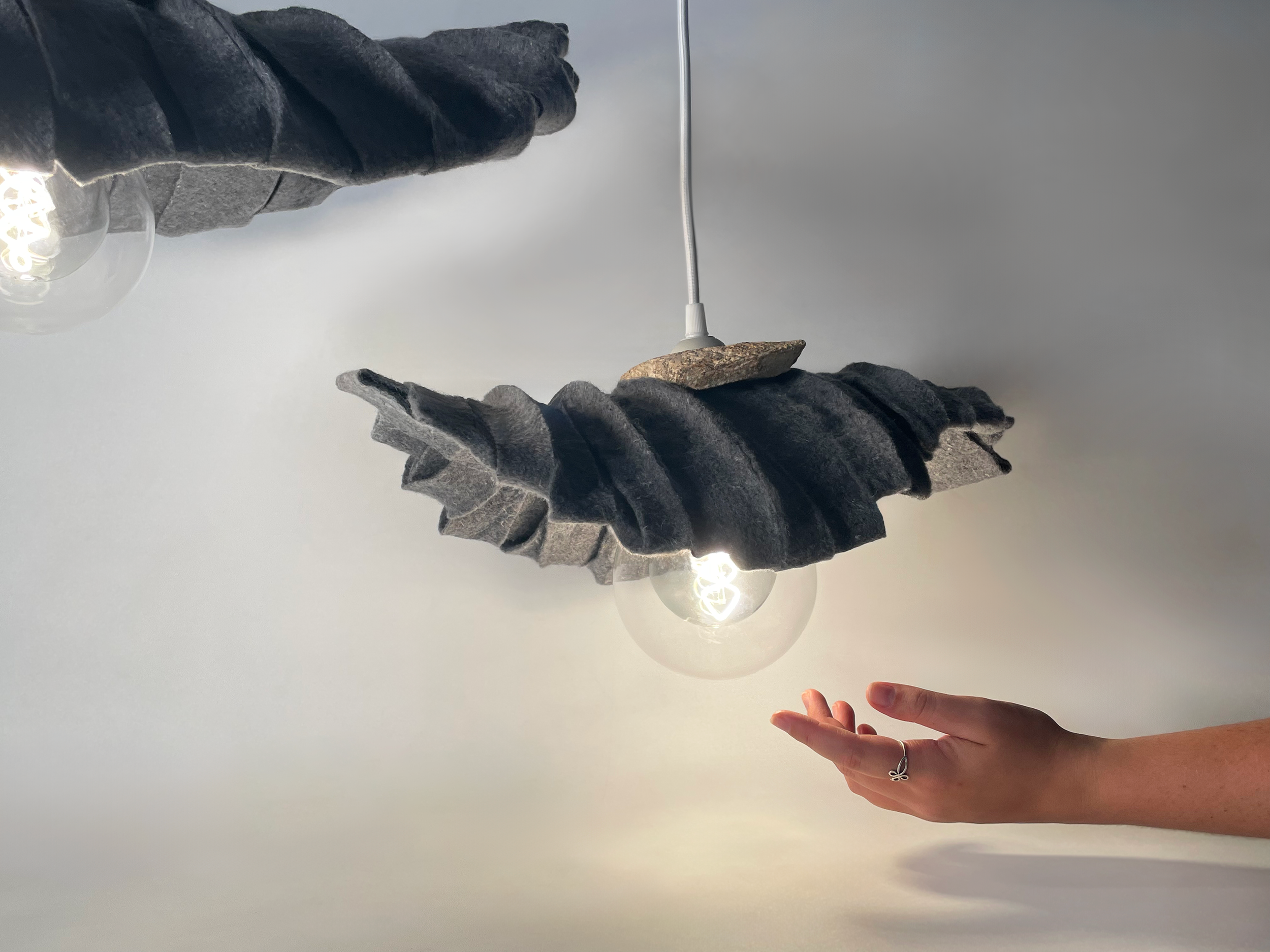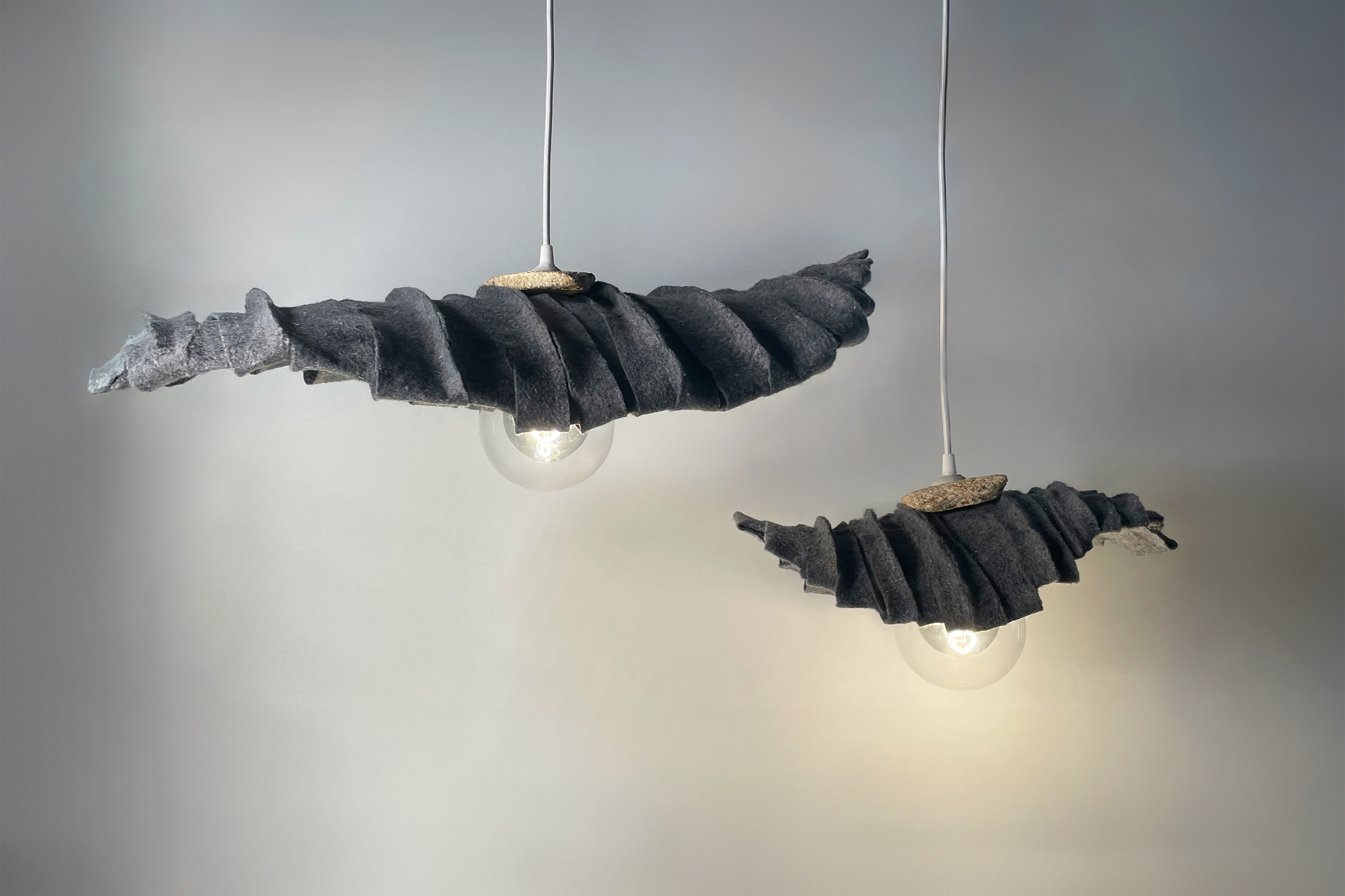 Lylo is a pendant lamp that repurposes this often-overlooked insulation material, extending its lifespan and showcasing its unique composition. The felt also acts as an acoustic solution, absorbing sound and creating a quieter environment.